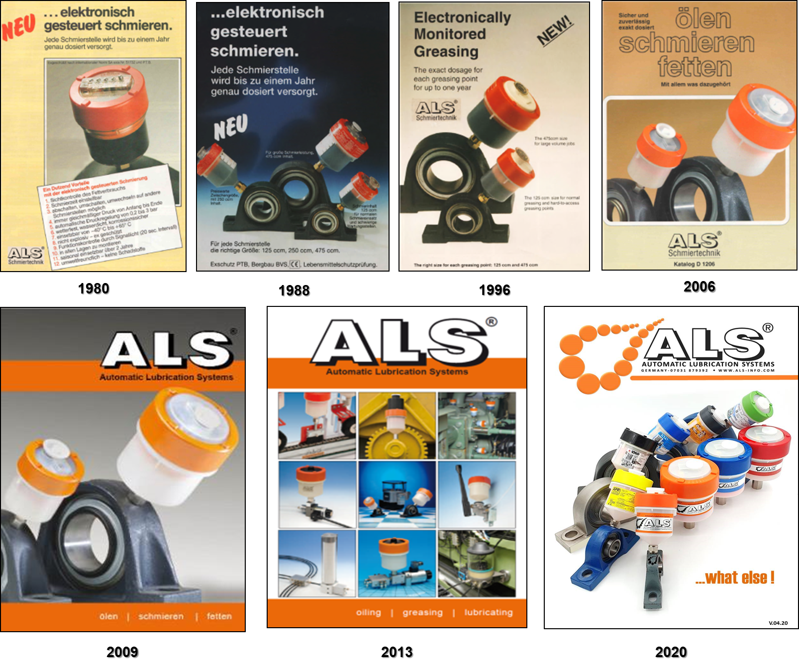 1991 The ALS 475 Lubricator was also released and introduced worldwide, and ALS extended the product selection in case of oiling, greasing and lubrication systems with ALS drip feed oilers, its pneumatic microspray system, complex central lubrication systems and individual pumps for oiling and greasing support in different areas.
